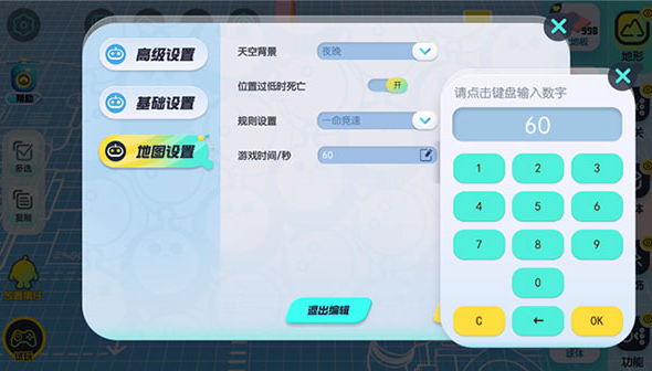 游戏时间可设定闯关限时,数值范围在10至999之间;建议设置合理时长,因为创作者本人也需成功通过自己的关卡才能发布地图。