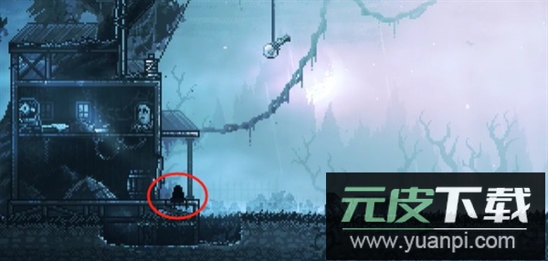 3、切换至流浪者视角。向左走到房屋前松动的木板处,站立跳跃几次踩碎木板,从下方的坑道爬进屋内,取得镰刀;随后推开房门走出,用镰刀解决门外的黑色怪物。