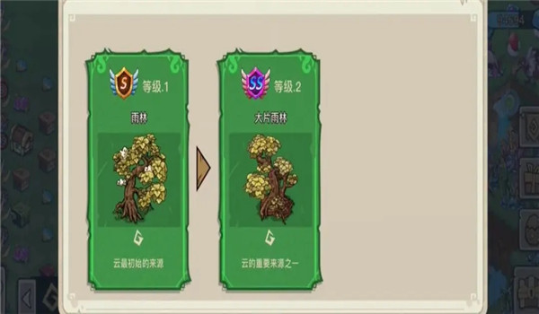 一级雨林占据一个格子,二级的大片雨林则占据四个格子;大片雨林虽然占用空间较多,但生产效率更高,通常拥有两个二级大片雨林就能实现云朵的持续产出。
