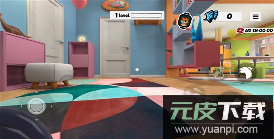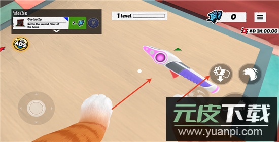 你将扮演猫咪角色,通过虚拟摇杆控制移动;