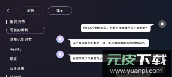 2、点击右上角头像,可以阅读游戏剧情与提示信息;提示内容有助于理解游戏机制,并能解决游玩中遇到的许多问题。