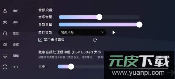 可调节游戏音量与缓冲区大小;若设备延迟绝对值超过120ms,可能导致击打音效与判定不同步,建议关闭击打音效。