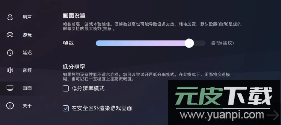 在此调整画面相关设置;若设备性能允许,提高帧率可提升视觉流畅度与判定体验,开启低分辨率模式也有助于运行更顺畅。