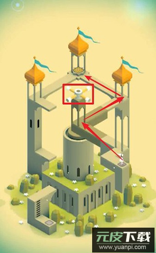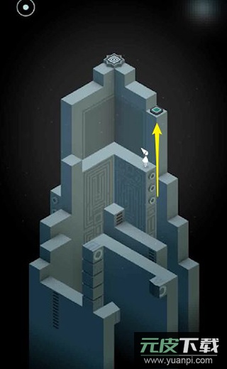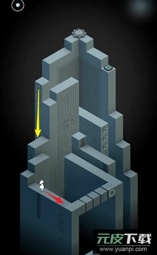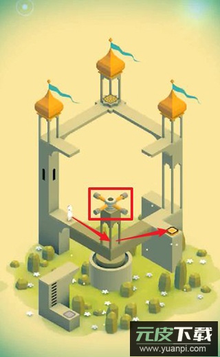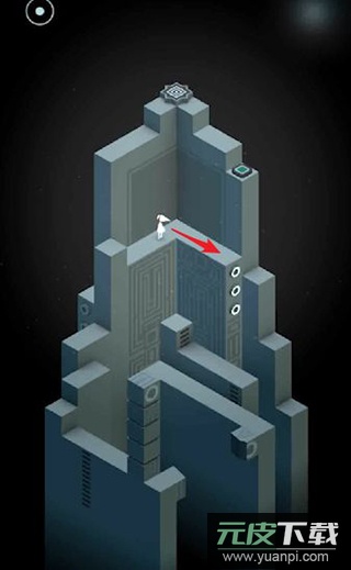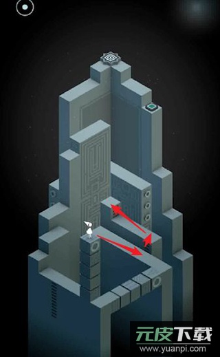 2、旋转中央的旋钮使通道连接按钮,点击让艾达站在按钮上以触发新机关。返回起点位置,再次旋转旋钮使通道通向第二个按钮。机关启动后平台上升,重新调整旋钮方向,引导艾达走到终点前。