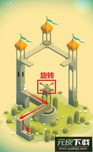 本章操作简单却体现了游戏核心玩法。引导角色走到断桥前方,转动旋钮将桥连接,点击使角色抵达道路尽头。