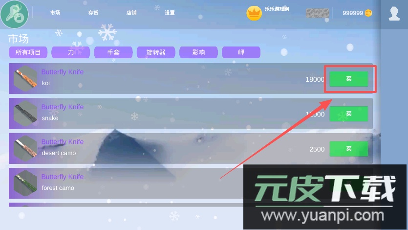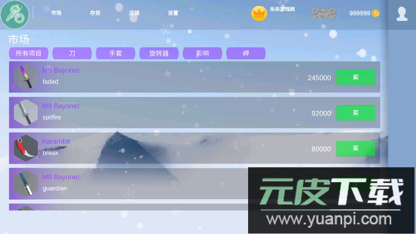 2、进入市场后,可以浏览各类武器装备。