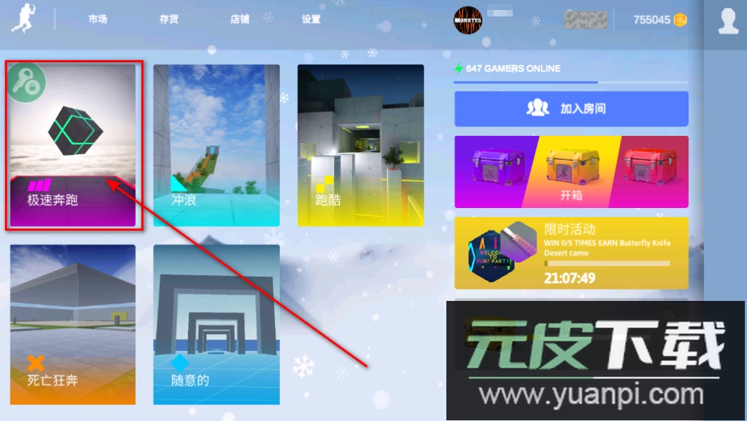1.启动游戏后,选择极速奔跑模式开始。