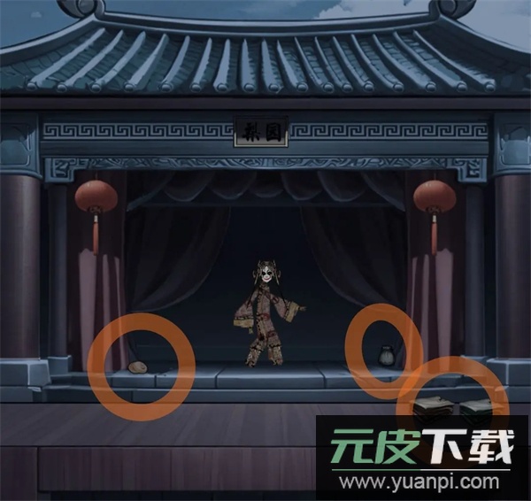 向右走(前方有惊吓画面请注意),获取戏台左右的茶包与胭脂;台子上放置红绿两色戏服(此处戏服选择与文思堂鬼脸颜色相关,但测试发现颜色出现为随机,可随意选择穿戴)。