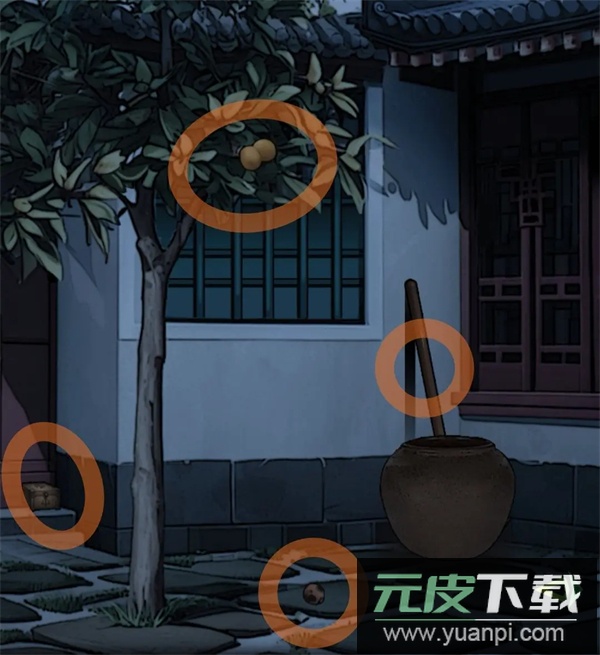 别雅园:进入后先向左走,拾取地上的钩耙、烂枇杷及左下角的砝码;使用钩耙摘取树上的枇杷,获得枇杷。