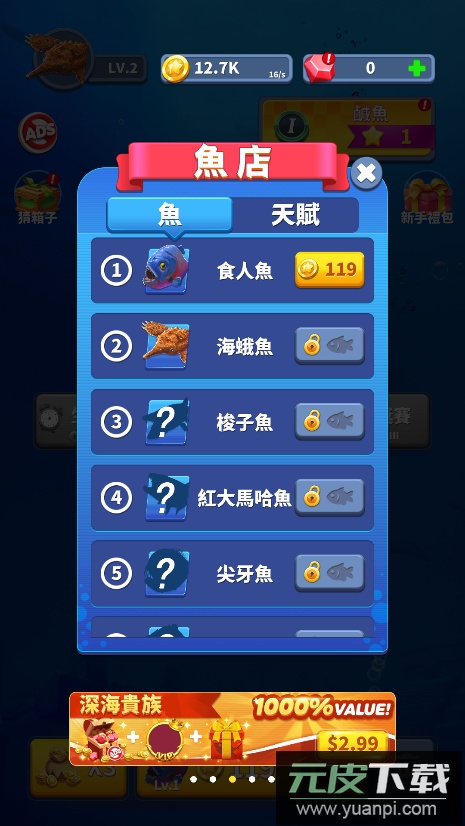 这是一款以吞噬进化为核心的多人竞技休闲游戏,融合了生存与策略元素。玩家最初扮演一条弱小的小鱼,在广阔的海洋世界中,需要吞食比自己更小的鱼类来成长,同时小心躲避大型掠食者。游戏采用3D卡通风格,搭配逼真的水流音效与唯美海底场景,营造出沉浸式的生存体验。无论是单人闯关还是全球实时对战,玩家都能体验到从小鱼成长为海洋霸主的历程。通过不断吞噬,鱼的体型会逐渐增大,移动速度可能提升,可捕食的范围也会扩大。收集宝石或金币能够解锁特殊技能或购买新角色,从而增强生存能力;持续进化,最终成为海洋中的顶级掠食者。