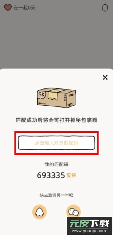 你也可以复制自己的匹配码发送给伴侣,让对方来发起匹配;软件还支持通过QQ或微信直接邀请另一半加入。