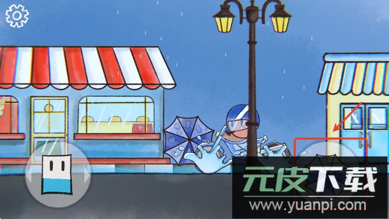 1. 双摇杆操作:左侧摇杆负责角色移动,可引导纸片人进入商店、公交车等掩体下避雨;右侧摇杆专用于控制雨伞方向,点击屏幕可触发阻挡动作,需要在车辆溅水的瞬间准确防御。