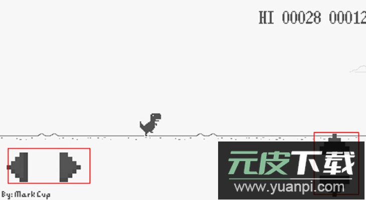 遇到前方障碍时,点击右侧按钮可使小恐龙跳跃通过。