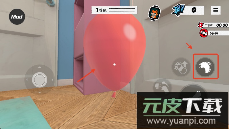 操控猫咪时,点击猫爪形状的互动按钮,可以与场景中的各类物品进行接触与互动。