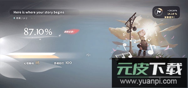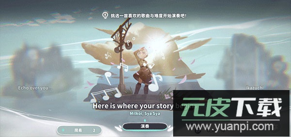 3、每推进一个故事章节,便会解锁一首新的乐曲;留意左下角的难度标识,点击“演奏”开始挑战。
