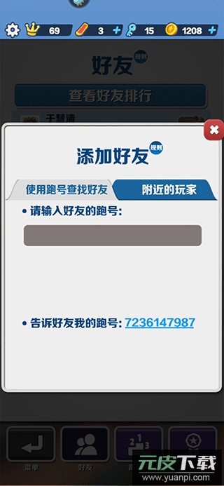 1、直接输入好友的游戏ID进行添加;若不清楚ID,可通过分享功能将自己的ID发送至社交平台,告知好友。
