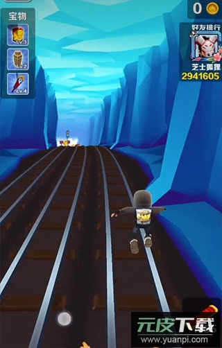 目标是尽可能跑得更远,并收集轨道上的金币。游戏采用前进方向的后视角。通过左右滑动切换轨道,向上滑动跳跃,向下滑动滚动。这些基础操作需组合运用。穿过金币即可自动收集,金币可用于购买新角色、道具或进行升级。