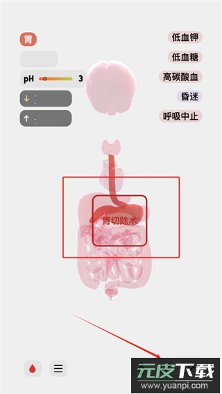 4、点击最下方图中选定的图标,可以选择特定内脏进行切除操作;