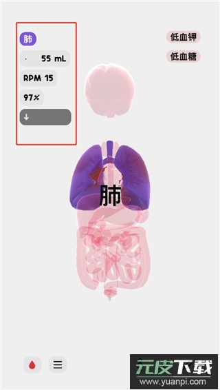 1、进入游戏后,点击任意器官即可查看该器官的实时状态;