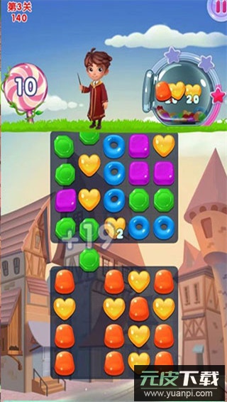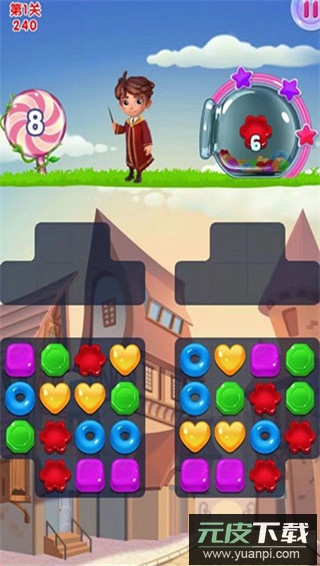 1、将三个颜色相同的糖果连在一起即可完成收集,这就是神奇的消除魔法;每个关卡都设有收集目标,达成目标即可通关并进入下一关;