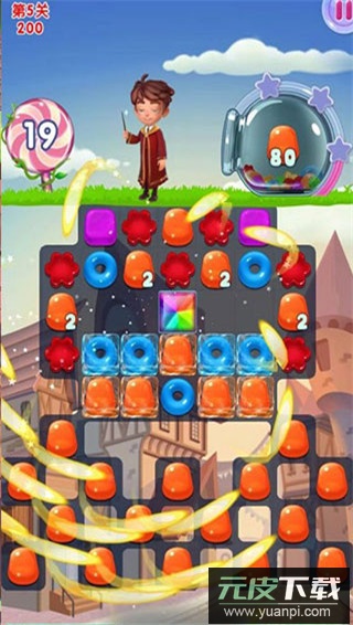 4、可以挑战全新关卡,赢取更多星星;在这一关需要收集黄色糖果,如果在目标糖果旁边进行消除,还会触发意想不到的效果;