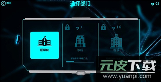 初次进入游戏,可见许多部门需要相应等级解锁,因此选择从医学院部门的实习关卡开始,此关卡非常适合新手熟悉游戏。