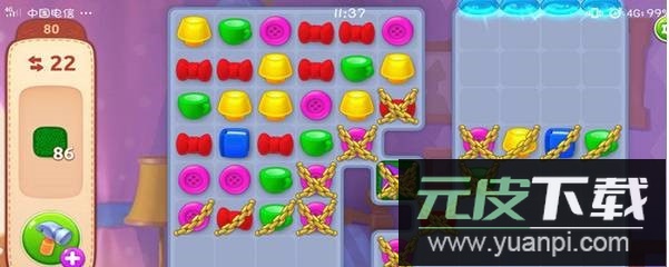 4、到了闯关末期,剩下的任务内容不多但步数即将耗尽,可以借助右侧的锤子道具完成收尾,如果步数耗尽只差一点就能通关,除了重新挑战之外,也可以购买加5步的道具,确定自己能在5步之内过关再购买,不然直接重新挑战更划算,正常操作的话基本都能顺利通关。