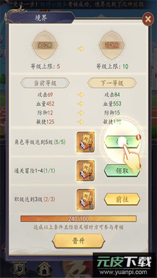 点击右侧考核按钮,完成相应考核任务后即可领取丰厚礼包;奖励包含除妖符等道具,任务内容简单明了,多为升级、通关等目标。