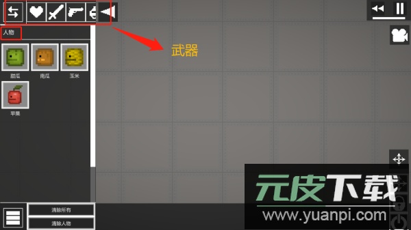 2、进入游戏后点击左上角菜单,在地面上放置两个需要连接的物件;