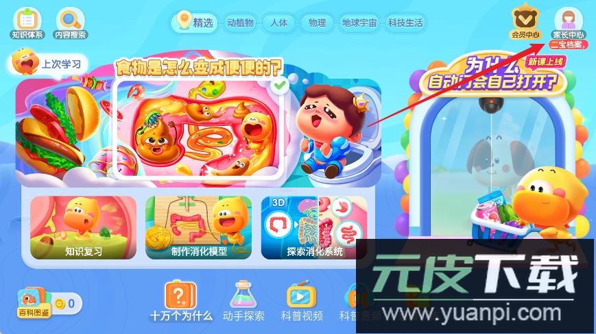 进入应用主界面后,点击右上角的“家长中心”图标。