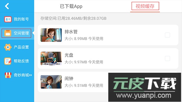 在账号中心页面,点击左侧“空间管理”选项,再选择右上方的“视频缓存”按钮。