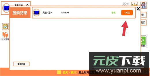 输入好友的ID进行搜索,找到后点击关注即可。