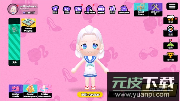 7、来到游戏主界面,这里可以访问商城、查看排行榜、接收任务等,点击play开始游玩;