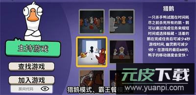 杀手鸭需要在时间结束前消灭所有鹅;鹅可以通过完成任务来缩短倒计时或选择躲藏;存活鹅每完成一项任务可减少4秒,幽灵鹅可减少1秒;最后60秒内鸭子移动速度会提升。