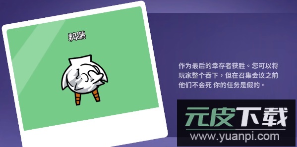 4. 鹈鹕:成为最终幸存者即胜利;你可以吞下其他玩家,但在会议召开前他们不会死亡;你的任务是虚假的。