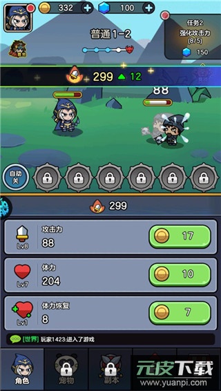 这款策略冒险游戏采用清新可爱的Q版美术风格,界面简洁明了,画面与音效表现精致,操作方式简单直观,同时融入全自动放置的休闲机制,为玩家营造出轻松愉快的游戏氛围。玩家通过击败敌人持续提升战力,还能收集并培养各具特色的宠物,依据其特性进行组合搭配,从而整体增强战斗能力。