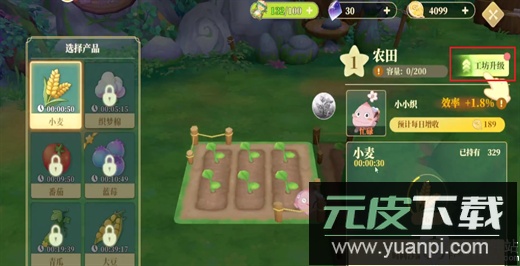 1、首先点击你的菜园,在界面右上角找到“工坊升级”选项并点击进入。