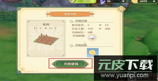 2、接着选择“升级建造”,请注意,升级建筑需要消耗一定数量的织梦币作为材料。