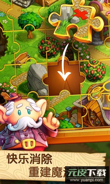 通过基础消除收集拼图碎片,修复受损的地图场景;同时还能搜集资源,合成并建造你喜爱的各式建筑。