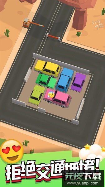 拥挤车位游戏融合了轻松休闲的要素,核心玩法是设法将车辆停入指定空位。初始关卡难度较低,随着进程深入,道路上会出现越来越多的障碍物,停车挑战也随之升级,非常考验玩家的规划与操作能力。