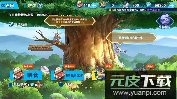 6. 扭蛋系统是获取数码兽的直接途径;通过向两只数码兽喂食来寻觅数码蛋,喂食五次即出现究极蛋,孵化出的数码兽品质更高。