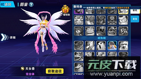 1. 游戏包含幼年、成长、成熟、完全体、究极体及超究极体六种数码兽阶段,玩家可自由培养进化。
