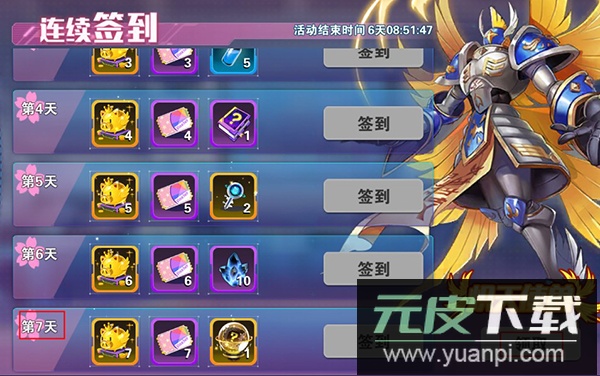 2. 连续七日签到均可领取丰富奖励,第七天更可获取强力数码兽——炽天使兽;