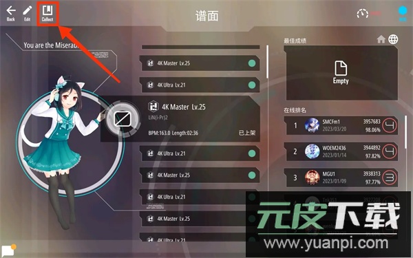 2、在谱面合集列表里挑选希望收藏的谱面;