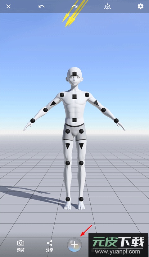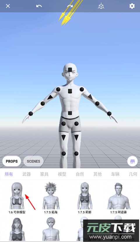 2、云端造型库:除了内置造型,还可以上传或下载其他用户创作的场景资源,例如飞机、汽车或舞台布景,节省自行搭建的时间;