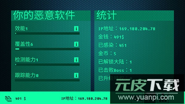 3、游戏左上角可花费金币更换当前的IP地址,以避免被监管机构发现;右下角则分别展示新闻、信息和升级选项。