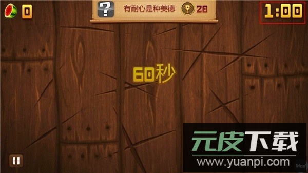 2、玩法与街机模式有所区别,该模式下没有炸弹与香蕉道具干扰,只需专注切割水果并刷新高分记录。