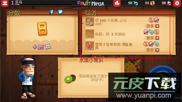 1、水果忍者:在经典模式中获得五十分;