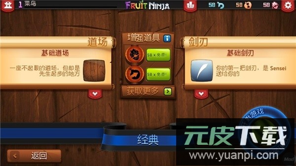 1、进入经典模式前,玩家可以选择辅助道具与不同外观的剑刃,这些装备有助于取得更好成绩。
