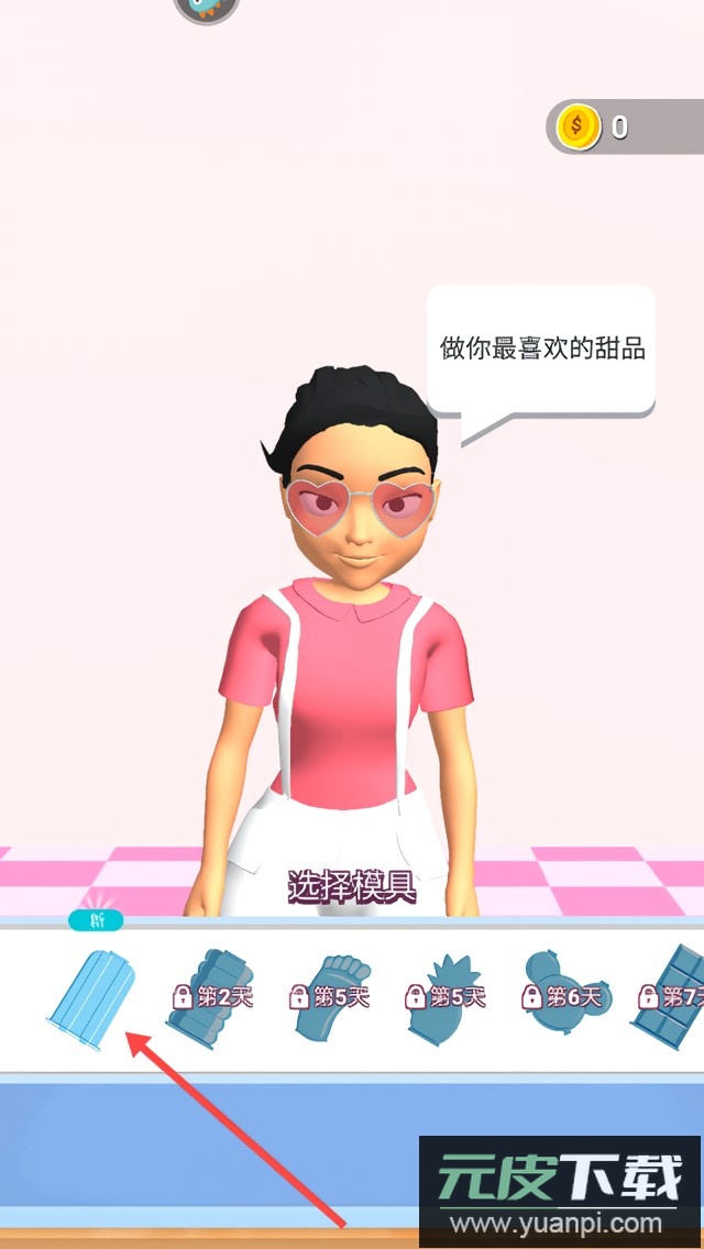 1、进入游戏制作环节后,根据提示“做你最喜欢的甜品”,首先点击选择所需的模具。